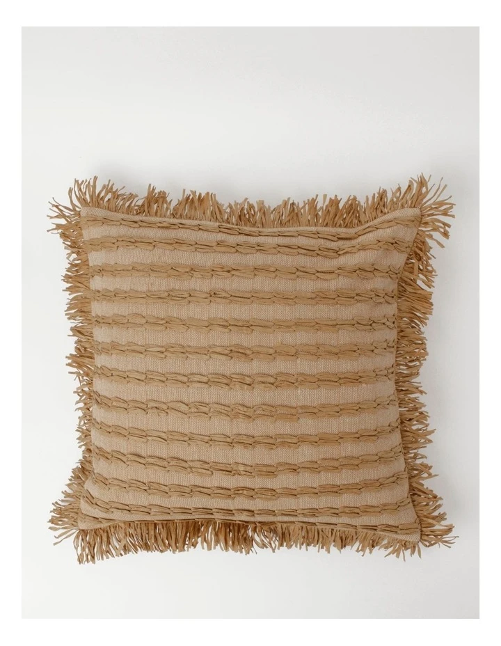 Australian House & Garden AHG Coorabell Raffia & Cotton Cushion w/ Fringes in Natural