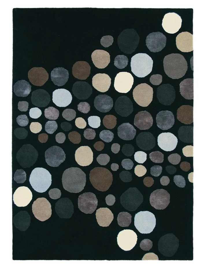 Estella Carnaval rugs by Brink and Campman are highly stimulating with a spectacular bubble design on a Black background. Estella 85005 rugs are hand made by the finest weavers to produce a high quality rug that is designed provide luxurious comfort and to meet the demands of the modern home. This rug is anti-static, sound-dampening, comfortable and suited for use in combination with floor-heating.
