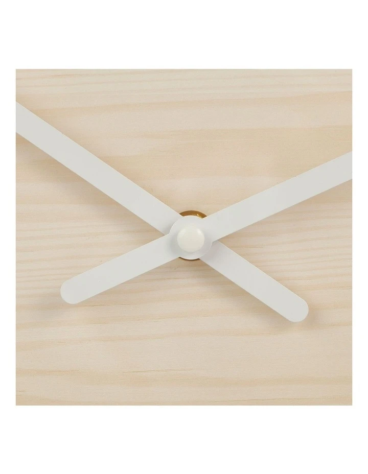 The tapered frame is a flat white contrasted with oak dial create a simple yet classic look.