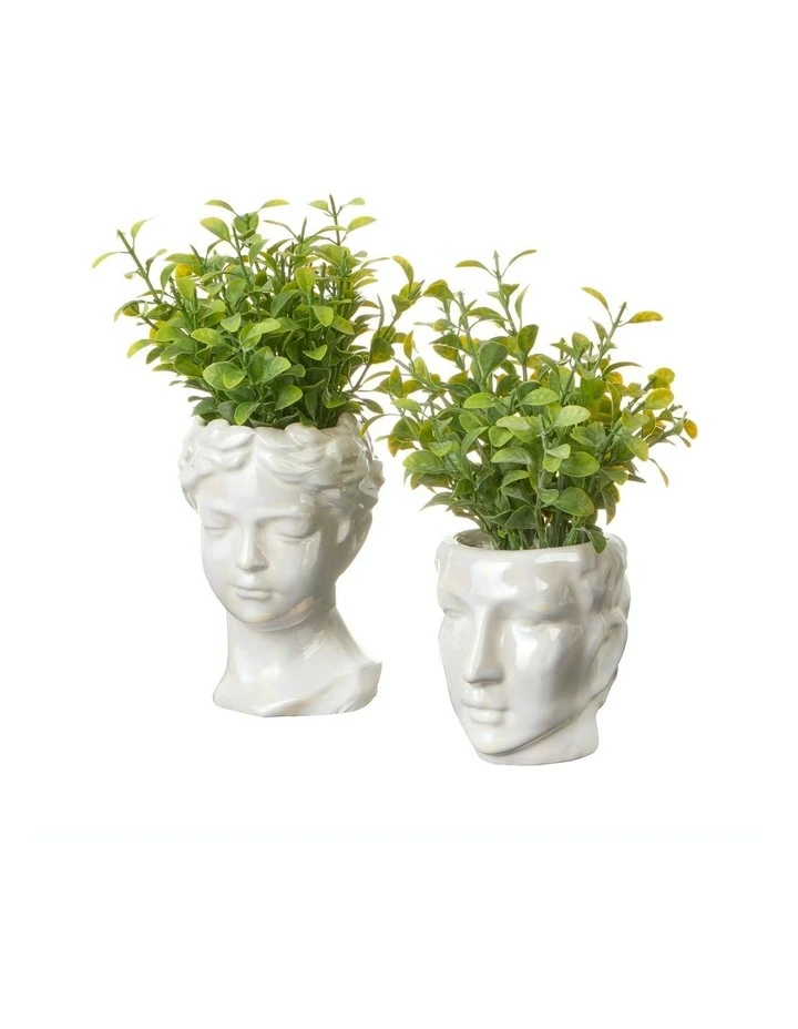 - 2x 25/20cm Artificial Greenery in Roman Head Planter