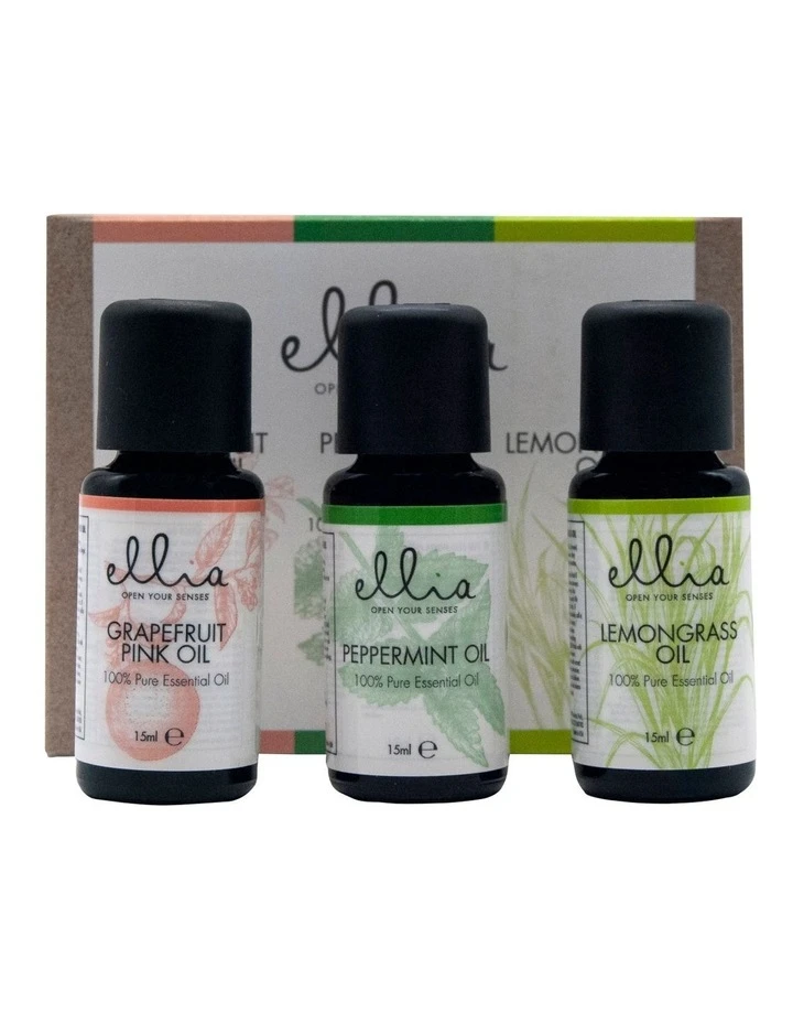 The Ellia Triple Pack Essential Oils with Grapefruit/Peppermint/Lemongrass lets you create a relaxing environment in your room to eliminate unwanted odours and calm your senses.