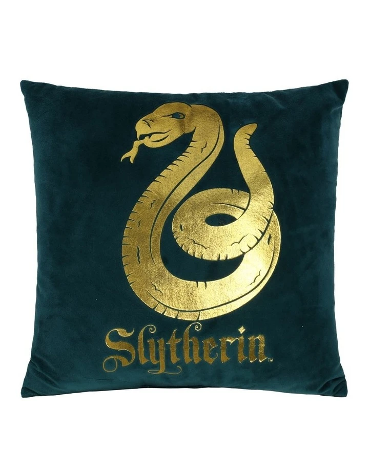 Slither-in to bed tonight with this stunning Slytherin cushion featuring a shimmering metallic design. Made from plush brushed polyester, this easy care cushion has the softest, snuggliest handfeel. Coordinate with our Harry Potter Quilt Cover Sets to create a magical look.