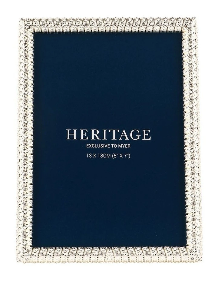 Zinc Alloy photo frame with glass. Frame size: 13x18cm. Velvet easel backing allowing it to sit horizontally and vertically