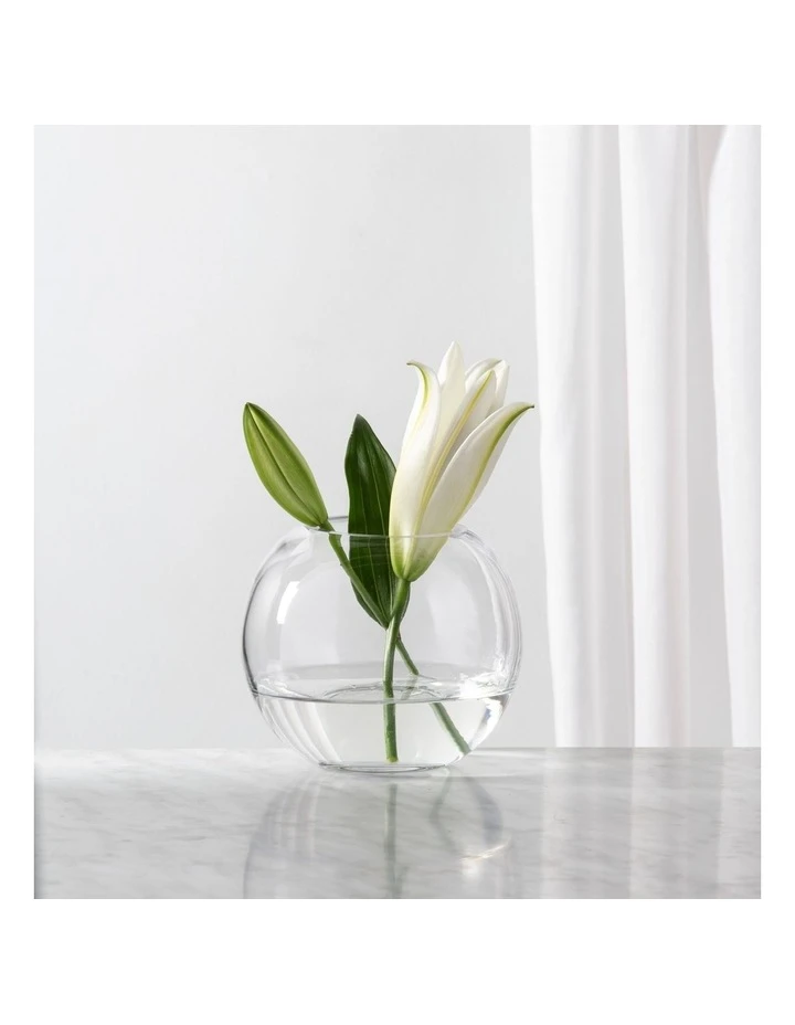 This classic fishbowl-style vase is a decor essential. It is perfect for the display of top-heavy flowers like orchids, roses, peonies and chrysanthemums that are allowed to spill over the vase’s rim. As it is clear glass and spherical, the Phoebe vase can also be used to create an interesting little terrarium-style garden.