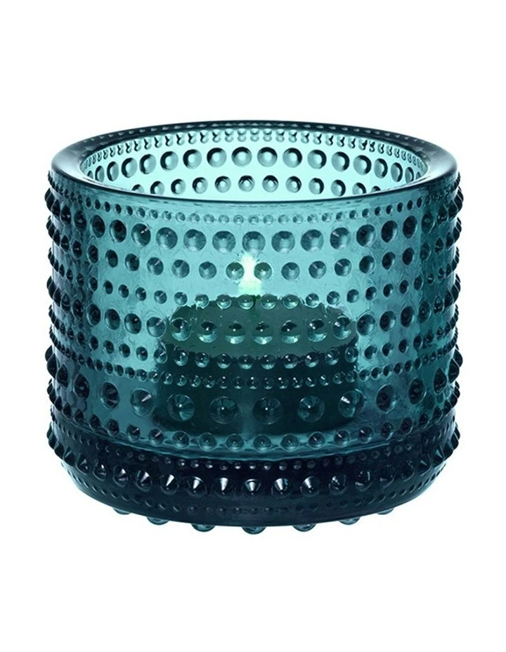 The Finnish name for dewdrop refers to the circles of bubbles in the pressed glass. Inspired by Finnish nature, the dewdrops glisten like a string of pearls on grass in the morning sun. Oiva Toikkas love for experimentation led to the creation of an entirely new droplet design for Kastehelmi. The resulting surface structure brings out the living, reflective beauty of the glass.