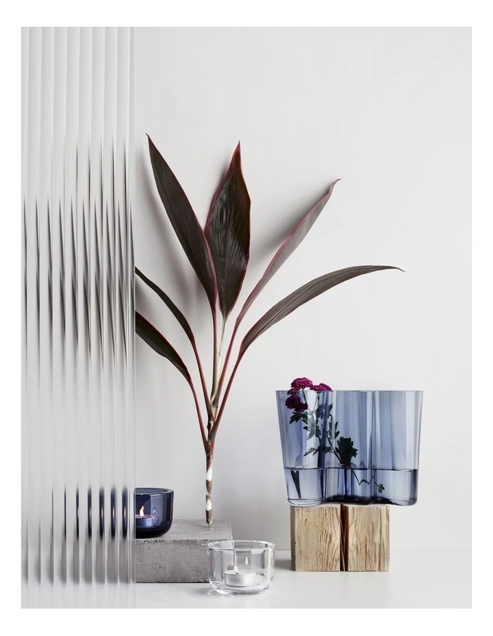 The Valkea candleholder is designed by Harri Koskinen, one of Finlands best loved designers. Its classic, soft profile, is inspired by Nordic nature. Shades of blue and soft grey create a calm, relaxing ambience.