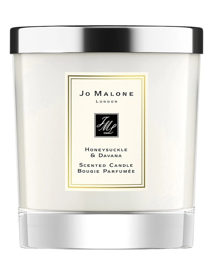 Honeysuckle & Davana Home Candle. The wildness of honeysuckle, winding through the English countryside. Climbing. Twisting. Ever more alluring after dark. Fresh with rose and the aromatic, fruity twist of davana. Woody with moss. Warmed by sunshine. To uplift, to wind down, or simply to add an air of luxury. Candle burn time is 45 hours and includes lid. H9.2 x W7.5cm.