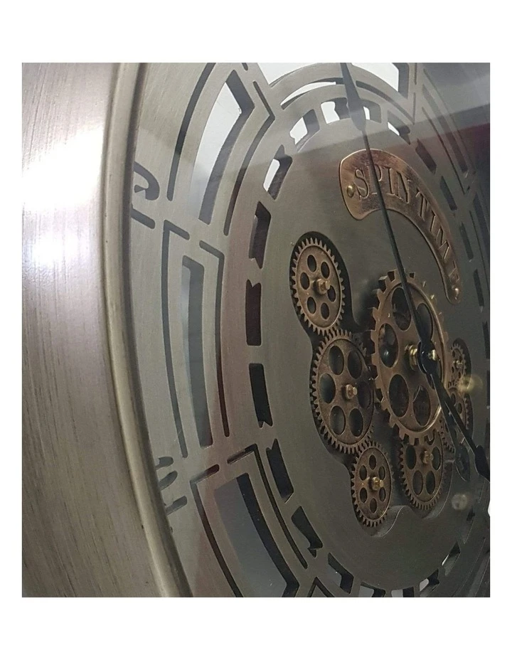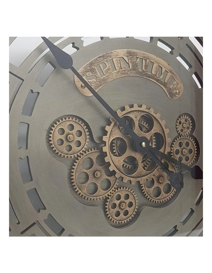 Inspired by the industrial era of design this beautifully crafted wall clock puts the popular in mechanics. The unpolished look provides a neutral aesthetic, while the visible inner mechanisms and cut out details provide visual interest. The frame is made of pure metal with an antique rustic washed metal finish and the clock face is hand-carved from solid wood.