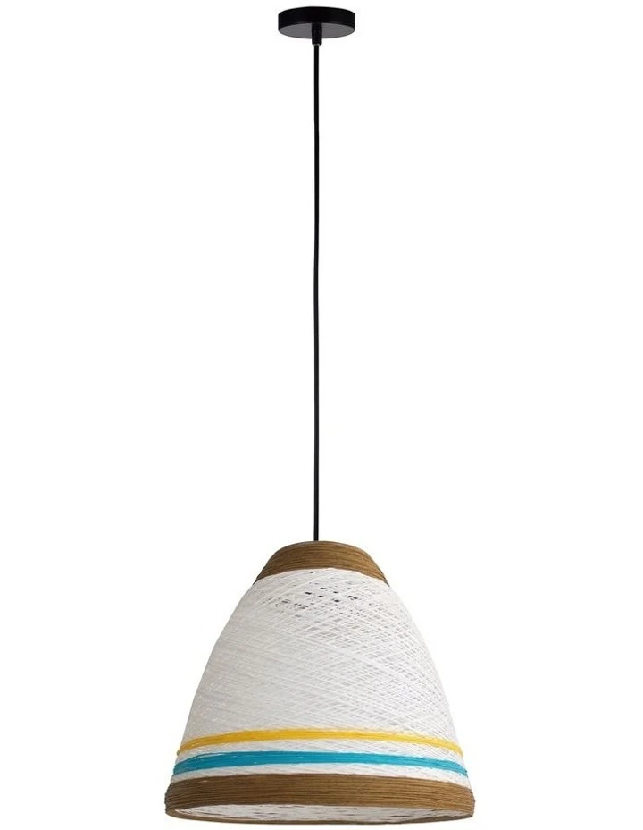 Once you add a light bulb, the fixture will diffuse a warm glow through the gaps in the light-colored paper lantern shade and brighten up any space. It can be incorporated into a rugged Australian farm cottage. Also available in brown and white.