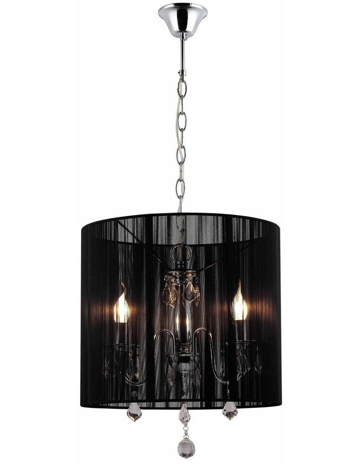- Material: Fabric Shade, Metal Chain and Crystal Look Glass Drops