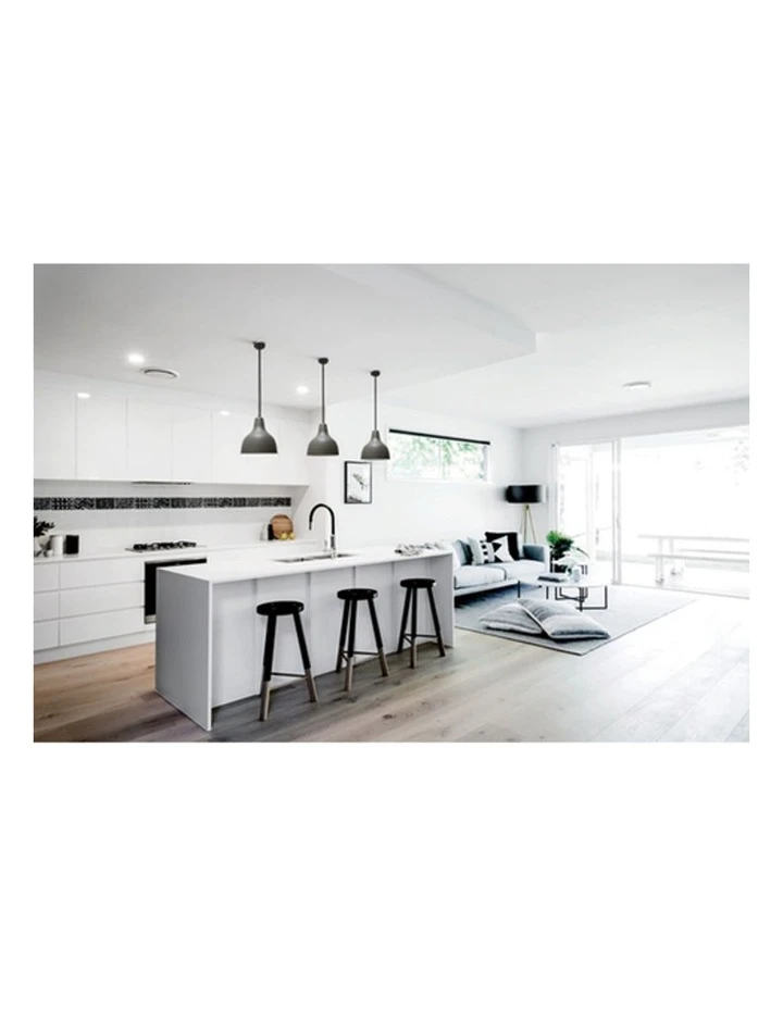 This modern pendant features a sand grey shade and matching grey ceiling plate. A perfect combination of sleek design and contemporary style for your home. This fitting is fully height adjustable at point of installation.
