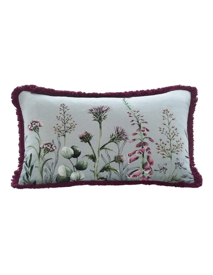 Printed on a linen/cotton blend and finished with burgundy fringing this cushion will make quite the statement styled with its coordinating quilt cover set and European pillowcases.