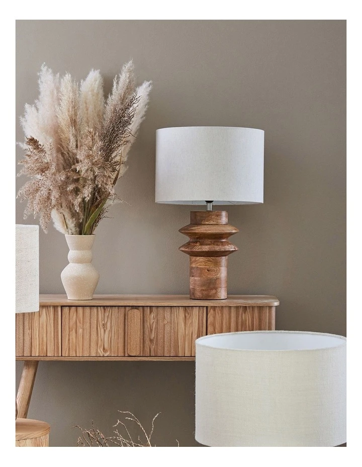 Materials: Shade: Cotton/Linen Base: Mango Wood