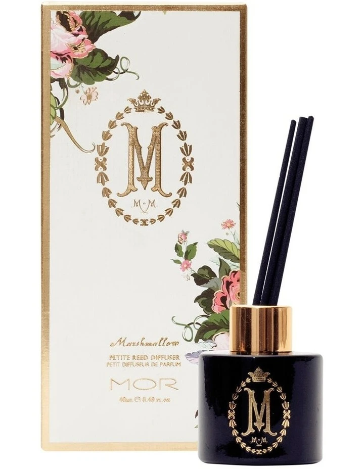 Undeniably memorable, this fanciful and feminine fragrance will mesmerise and delight. This embellished Petite Reed Diffuser set contains fragrance filled golden embellished black glass flacon with black reeds to infuse the air and add elegance to any space.