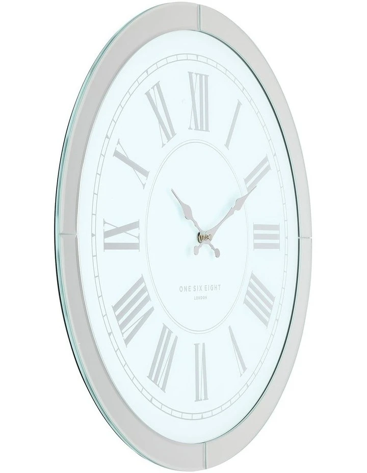 In polished mirror and shimmering glass, this beautiful classic style timepiece is a must for any beautiful interior. Mary has a lovely panelled mirror frame with a simple bevelled edge surrounding her classic style pale cream and mirrored roman numeral face. This gives her an enchanting yet sophisticated look that oozes femininity and will add a touch of glamour and sparkle to any interior room.
