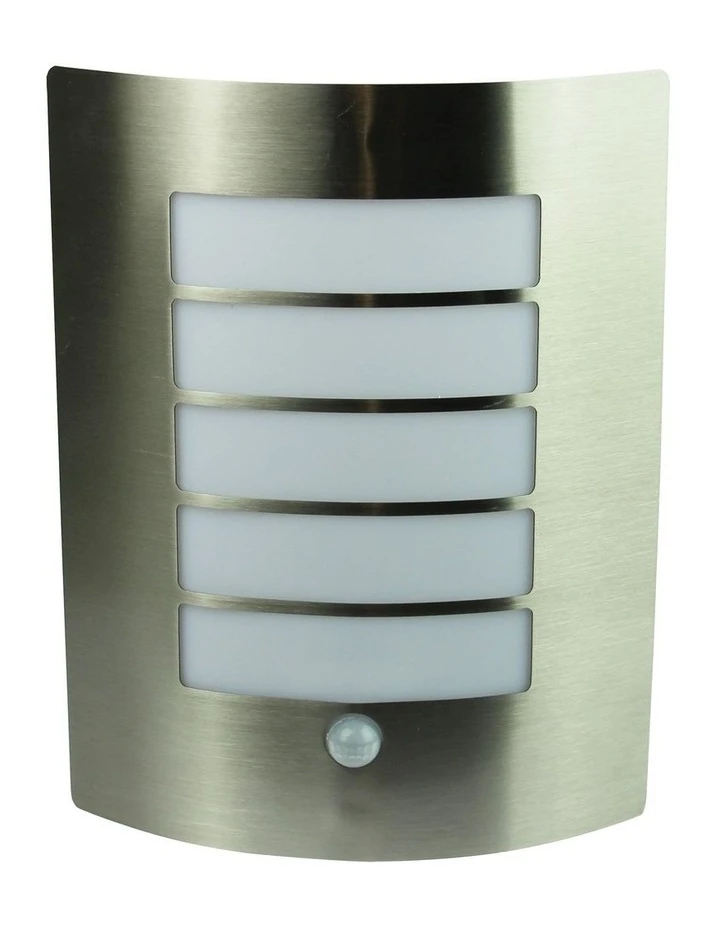 Opal acrylic exterior (IP44) wall light with a stainless steel face plate. The CHEETA SENSOR includes a passive infared motion sensor (PIR). The CHEETA emits a wash of light from around its sides and through the slats at the front. Perfect for use with a compact fluorescent bulb, available to purchase separately.
