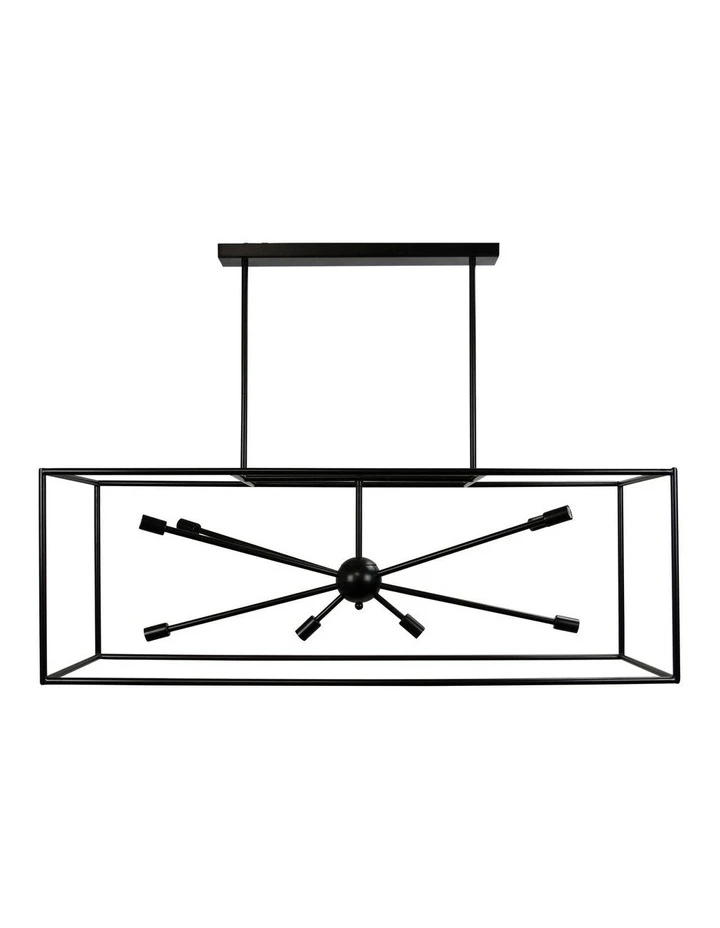 GEORGETOWN.100 Hamptons style pendant features a pipe frame in satin black and 8 small globes. Plenty of light and no glass to clean are the benefits of Georgetown. Available in a taller box style (Georgetown.35) and the longer rectangle (Georgetown.100) ideal for use in dining areas or over a servery. Supplied with 3 rod lengths which can be combined to achieve the desired overall height. Minimum height is 375mm, max height 960mm. Rods inside the box are fixed in place. Ceiling mount is a rectangular piece.