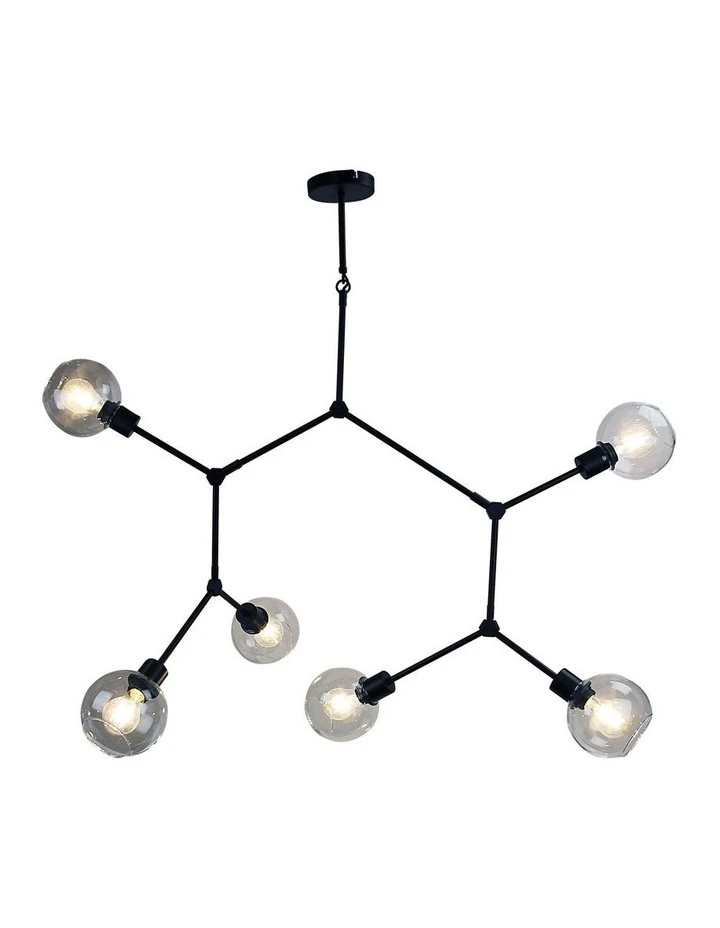 The Padua 6 light pendant features adjustable knuckles, allowing you to create your own look upon installation, and angle the light to where you want it. It’s complete with clear glass spheres.