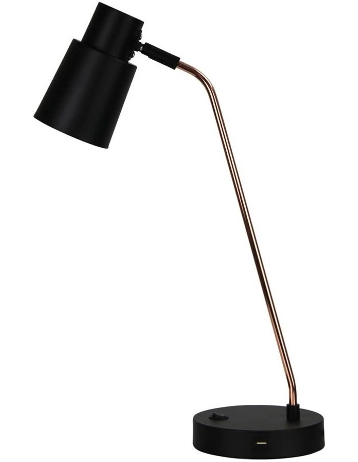Charging your phone or tablet has been made that much easier with the RIK table lamp which features a 2.1A/5V built-in USB socket. With a Stylish lamp head, tall neck and an easy to use switch located on the base, the RIK covers all bases from bedside to desk lighting.