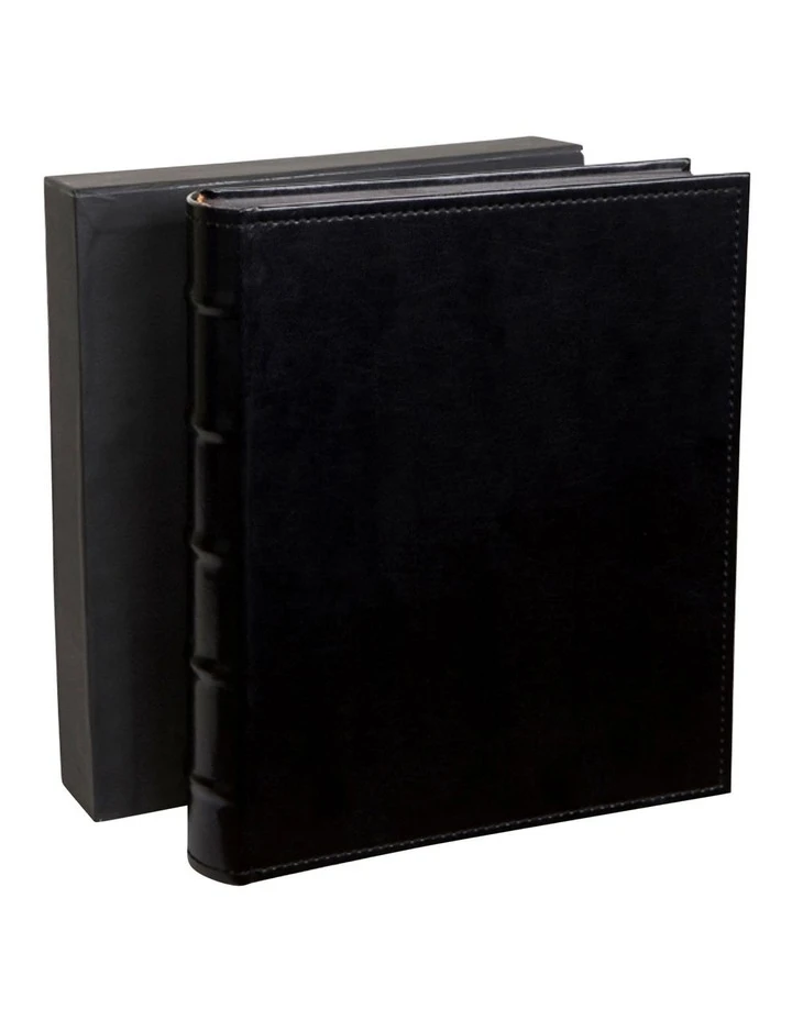 The Regal Black Drymount photo album feathers a leather look cover, 250gsm black pages with glassine interleaving between each page to protect your photo, book bound binding contruction and hard sleeve box to store your album for safe keeping. All albums are acid and lignin free and comes with the Profile Life time Guarantee. Album suits multi size photos per page. Can be used for scrapbooking as well.