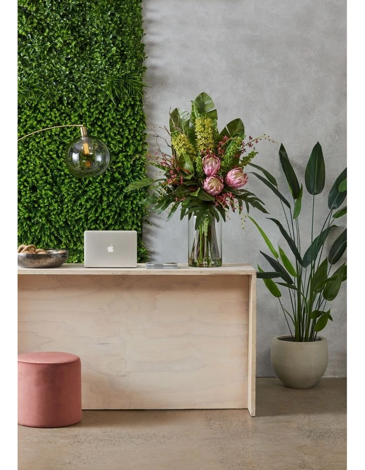 Rogues King Protea Stem is so life-like, you wont believe its faux! Combine with other stems to create a one-of-a-kind arrangement or simply display a single stem in a vase or glass jar for an exquisite yet effective focal point. Being artificial, it is very easy to care for gently wipe with an alcohol-free, unscented baby wipe. Keep out of direct sunlight.