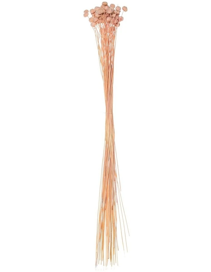 This charming bundle of button chrysanthemums is a natural product that has been preserved through a special process. The stems and sweet, rounded flower heads have been coloured soft pink for a vibrant and warm look. As dried flowers are so on trend, these stems will look glorious in a slender vase of their own. Or use them for colour, texture and bulk in a stunning dried flower arrangement.