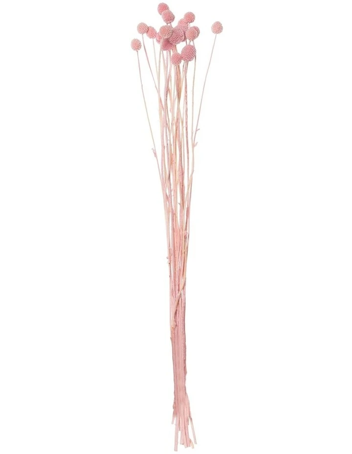 This bundle of Pom Poms is made from natural Billy Buttons that have been preserved through a special process. A pink colour treatment makes them extra cheerful, and helps bring out the intricate shapes and details of each natural stem and crown. As dried flowers and leaves are so on trend, these stems will look glorious in a slender vase of their own. Or use them for colour, texture and bulk in a stunning dried flower arrangement.