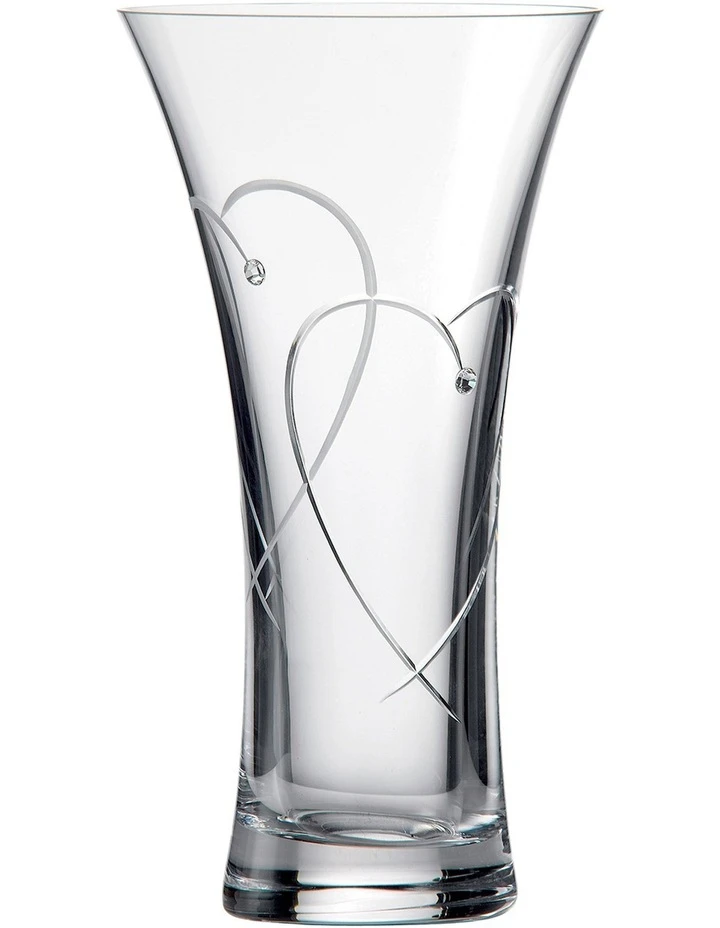 Whether it’s a wedding, anniversary or any special occasion, the Promises collection is the perfect way to celebrate in style. Featuring two etched intertwined hearts and hand applied Swarovski crystals, this "Two Hearts" Vase is perfect for gift giving.
