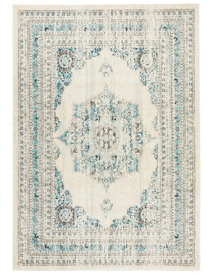 This elegant set from the Century range features a traditional design heavy on floral and arabesque laid on an off white, aqua and earthly toned scheme mixed hand finishing textures which complements a contemporary set up to any point or setting. The Century White range presents a Persian influence piece made from 100% polypropylene material, one is definitely assured that it is highly resistant to stain, durable, easy to clean and its colors are non-fading.