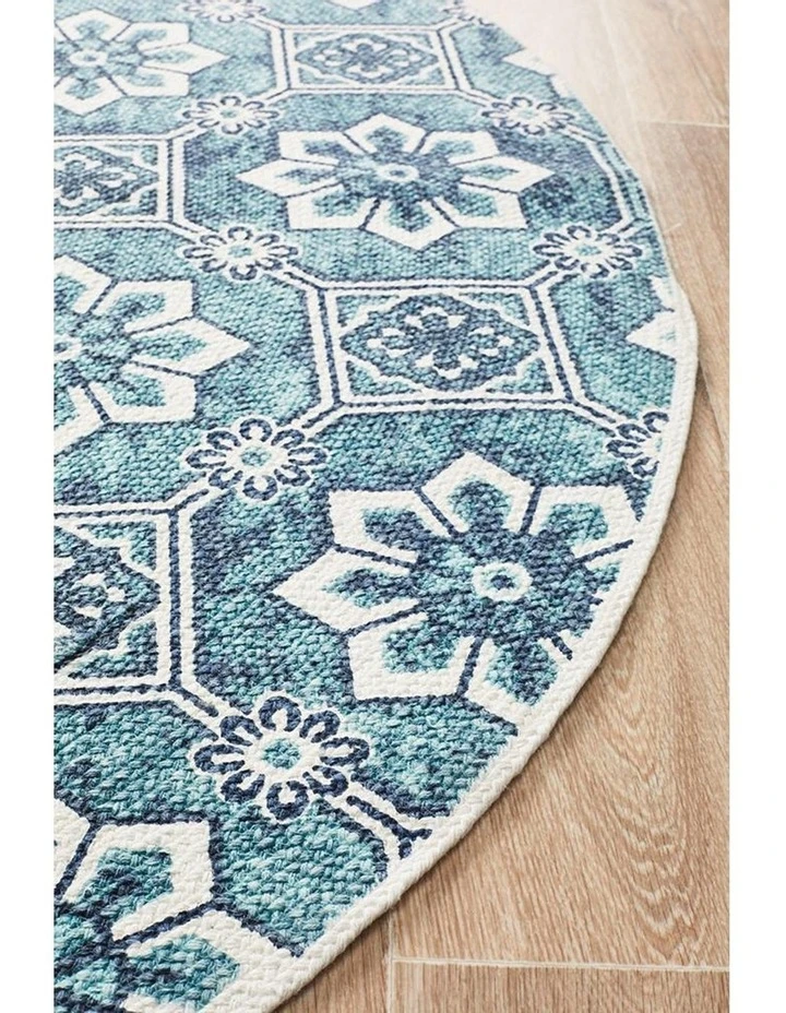 Perfect for a variety of styling themes, Lunar is a beautiful collection of printed cotton round rugs, available in 3 great sizes. Each piece is hand woven in India and features an intricate print in vivid hues.