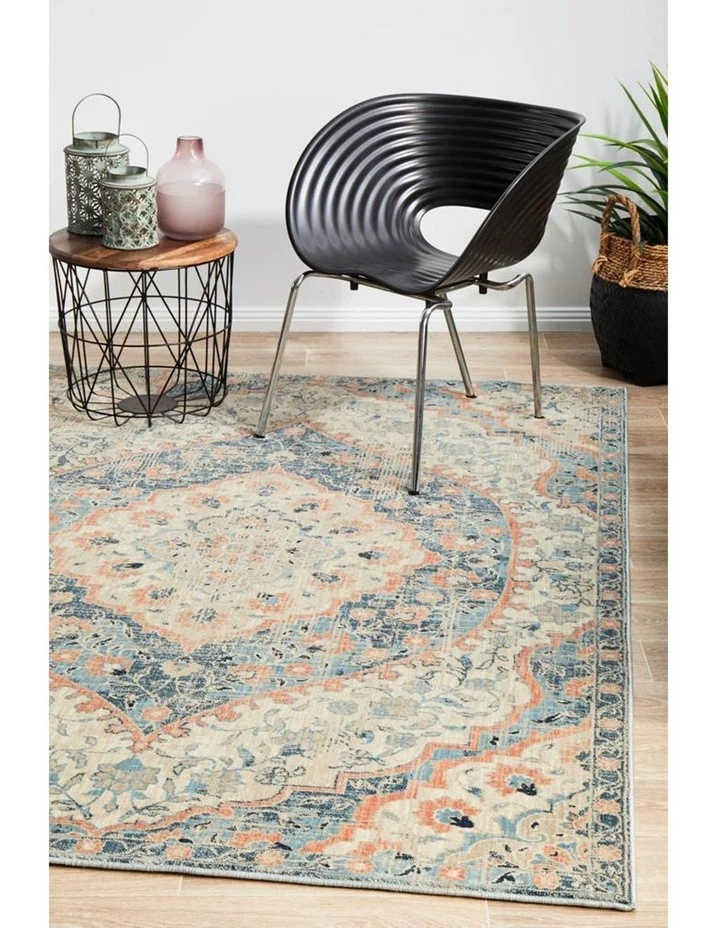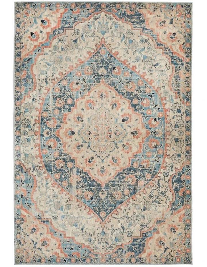 This elegant set from the Odyssey range features a traditional design heavy on floral and arabesque laid on a blue and earthly toned scheme mixed hand finishing textures which complements a contemporary set up to any point or setting. The Odyssey Navy range presents a Persian influence piece made from 100% polypropylene material, one is definitely assured that it is highly resistant to stain, durable, easy to clean and its colors are non-fading.