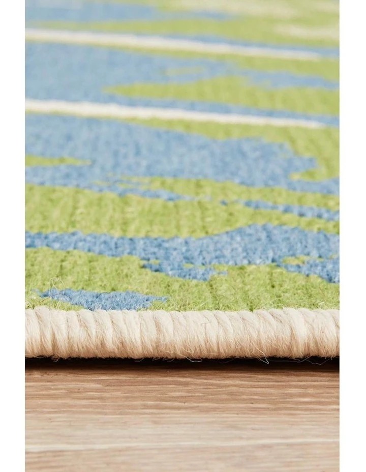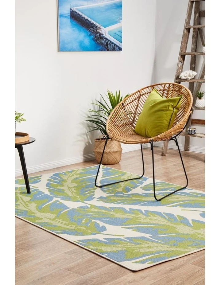 Vibrant, fresh, and tropical, this latest addition to outdoor/indoor rugs is a treat for the senses and will bring any space to life. This easy-care collection is designed to be used outdoors as well as indoors, these rugs are water resistant and will add an element of fun to any space. This short, easy to clean pile made from durable polypropylene and is power loomed.