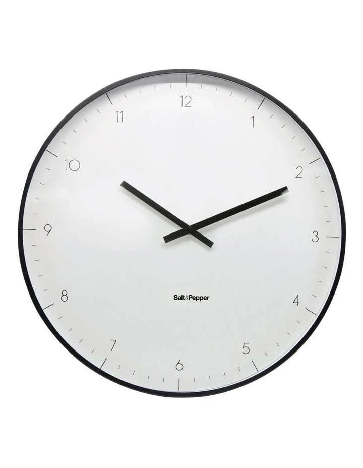 Time for a stylish update to your wall? Salt&Pepper’s classic & chic ELIO Clock is the perfect solution. 53.5cm in size, it has simple white hands and a frame in classic black to contrast a striking black face. Suitable for any space, the classic time piece will be loved for years to come/ Salt&Pepper is Fashion For Your Home.