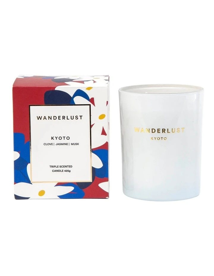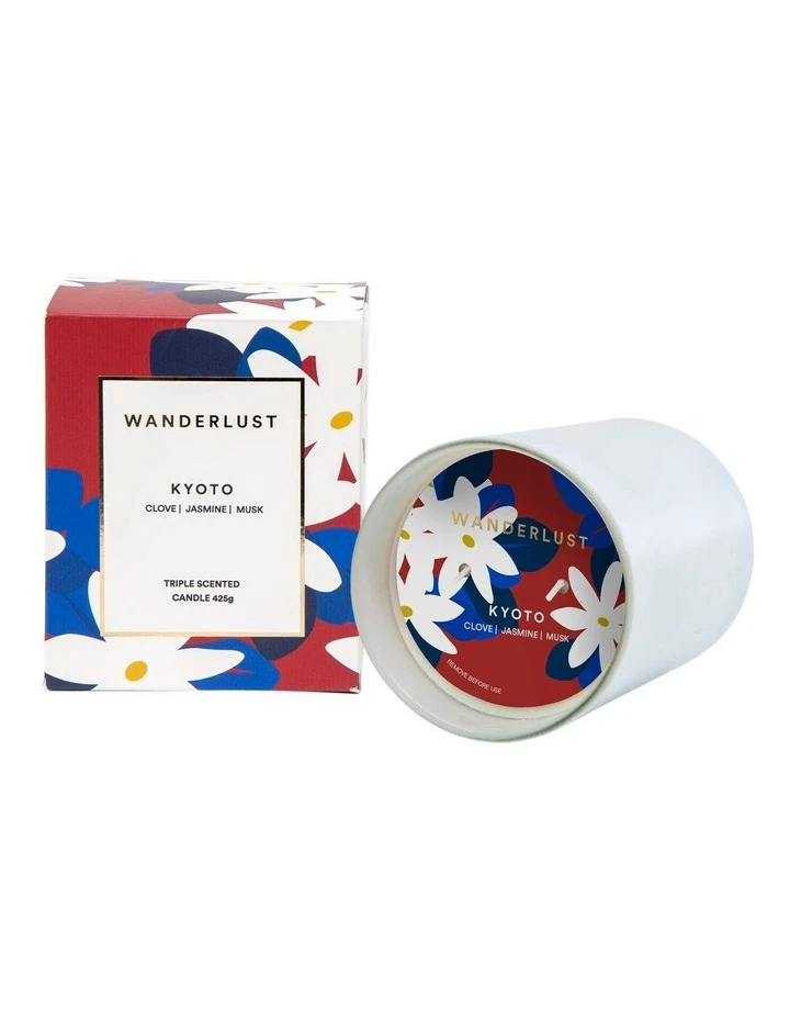 Revel in the traditions of a bustling oriental city with this 425g KYOTO soy wax blend candle from Salt&Pepper’s WANDERLUST collection. Using high-end, natural essential oils, this ravishing floral blend of clove, jasmine and musk will infuse your home with an exotic aura transporting you straight to Kyoto. Vibrantly packaged, each chic candle includes a non-toxic, 30-hour-burn cotton wick.