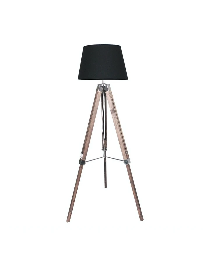 This floor lamp comes in a combination of black and wood to suit modern, industrial, and urban interiors. The tripod has an ash wood finish, giving the lamp a luxurious tone. High-quality metal fittings complete the look, creating an overall elegant fixture.