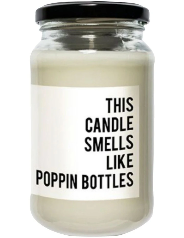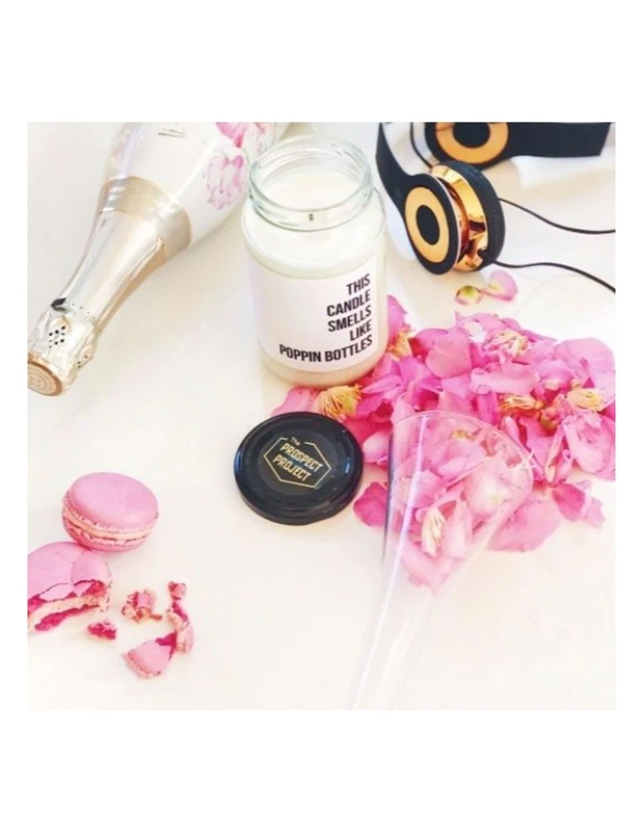 With more pop than Brittneys and Christinas careers combined, our Poppin Bottles soy candle is sweet, sassy and oh-so-sexy. Think: crisp, light, sparkling champagne paired with lush, fresh strawberries. Whether youre a lover of Dom, Veuve, or the good ol Stoli- Bolli (we bow down to your genius, Patsy and Edina), we know youll love our unique blend of berry n booze-y goodness.