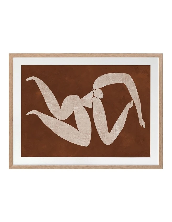 Caroline Cut-Out IV Print Oak Frame – Drawing inspiration from the iconic cut-out style artwork from modern art master Matisse, this artwork features a simplistic, caricature-like portrait of a figure with exaggerated limbs. The colour palette is warm and earthy, featuring a neutral beige coloured figure against a rich brown textured background. This artwork has been created to match with Caroline Cut-Out I, II and III.FRAMED ART: Giclee printed using archival inks and paper – which means no fading! Framed with a quality moulding and mounted behind museum grade plexiglass. Comes ready to hang.