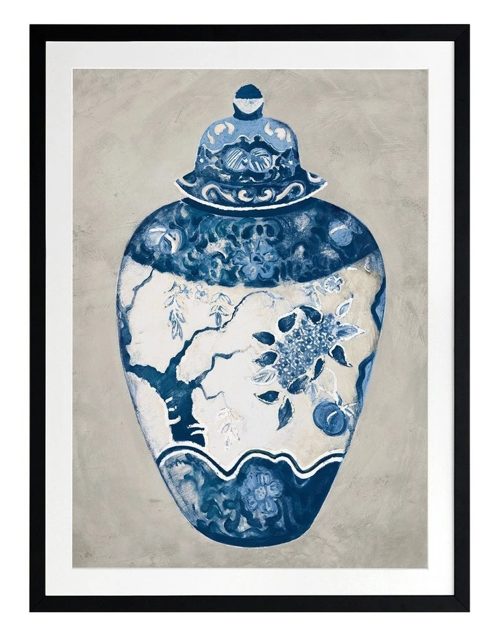 Orient I Print Black Frame – Quintessential Hamptons chic comes to life in this incredible art print featuring an intricately painted ginger jar. The blue and white jar features ornate, floral motifs, and is contrasted against a textured grey background. Pairs with Orient II.FRAMED ART: Giclee printed using archival inks and paper – which means no fading! Framed with a quality moulding and mounted behind museum grade plexiglass. Comes ready to hang.