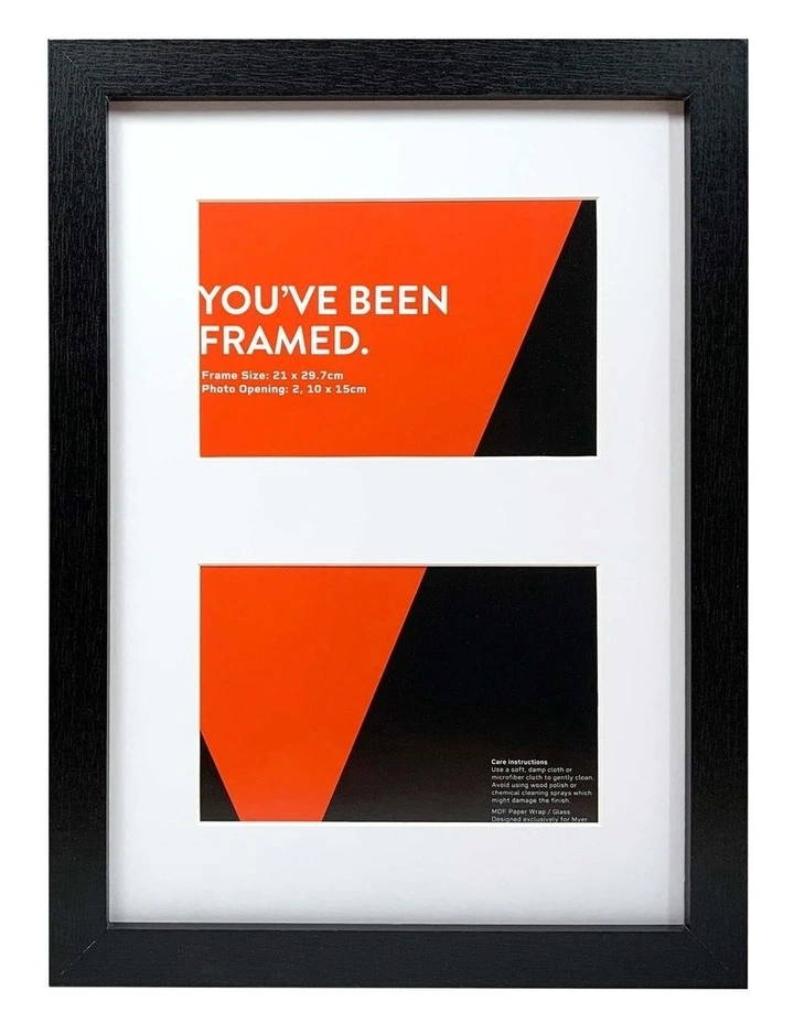 - Frame size: 21×29.7cm with a two 10x15cm photo openings